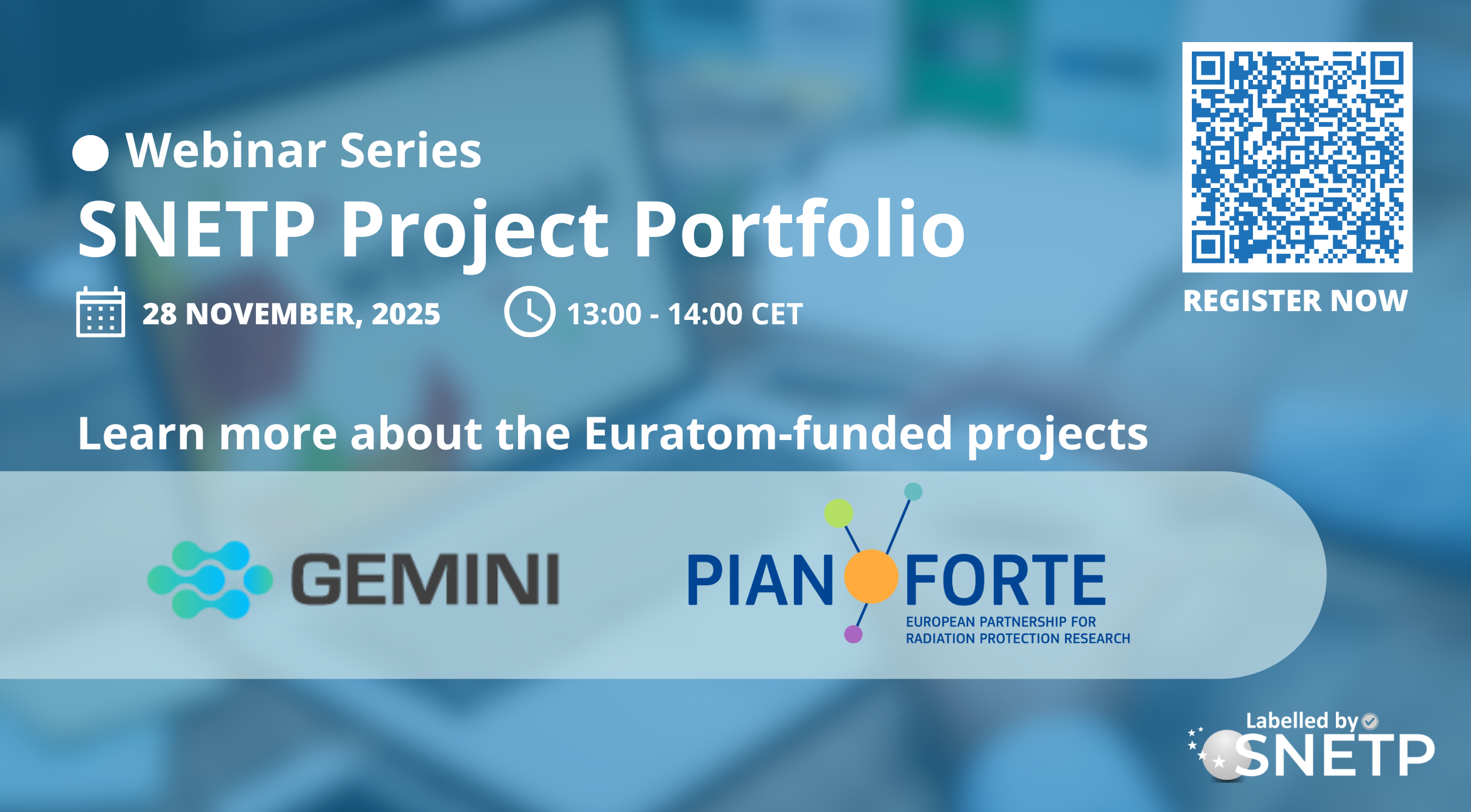 The next SNETP Project Portfolio Webinar is just around the corner! On 28 November (13:00–14:00 CET), we invite you to take part in an engaging session showcasing two Euratom-funded projects that are helping to