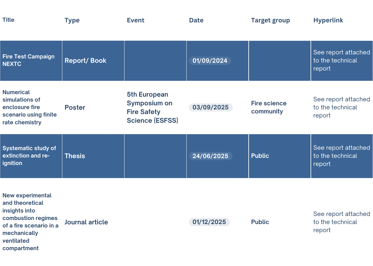 - Universities with compartment fire research (Lund University, University of Edinburgh, University of Poitiers)